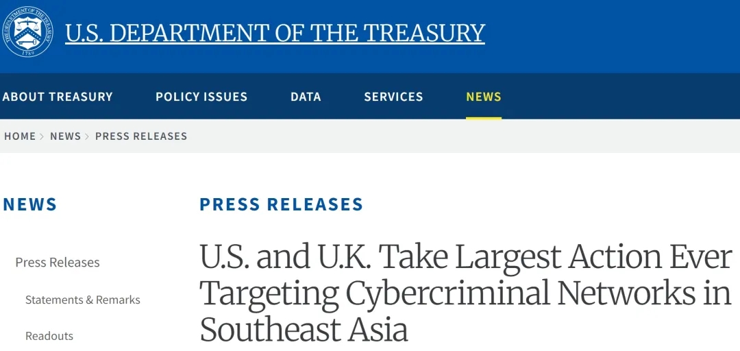 美国财政部外国资产控制办公室(OFAC)对“王子集团跨国犯罪组织”(Prince Group TCO)内的146个目标实施了全面制裁。该组织是一个以柬埔寨为基地的网络,由柬埔寨人陈志领导,通过针对美国及其他国家民众的网络投资诈骗活动经营着一个跨国犯罪帝国。此外,美国金融犯罪执法网络(FinCEN)根据《爱国者法案》第311条的规定,最终确定了一项规则,将总部位于柬埔寨的金融服务集团“汇银集团”(Huione Group)从美国金融体系中剔除。美方称多年来,汇银集团一直为恶意网络行为者洗钱,包括虚拟货币诈骗和盗窃所得。