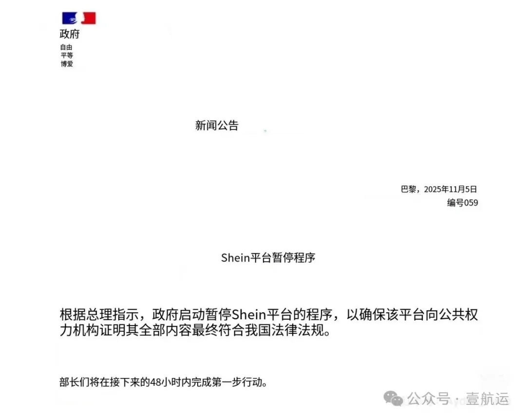 在法国政府发动攻势后,Shein 在给法新社的一份声明中宣布,“由于对其中一些人所做的 某些上传内容感到担忧”,它将暂时暂停在法国 的第三方卖家的产品。该平台在法国的发言人昆汀·鲁法特 (Quentin Ruffat) 表示,该公司 “ 注意到政府 今天发布的公告”。